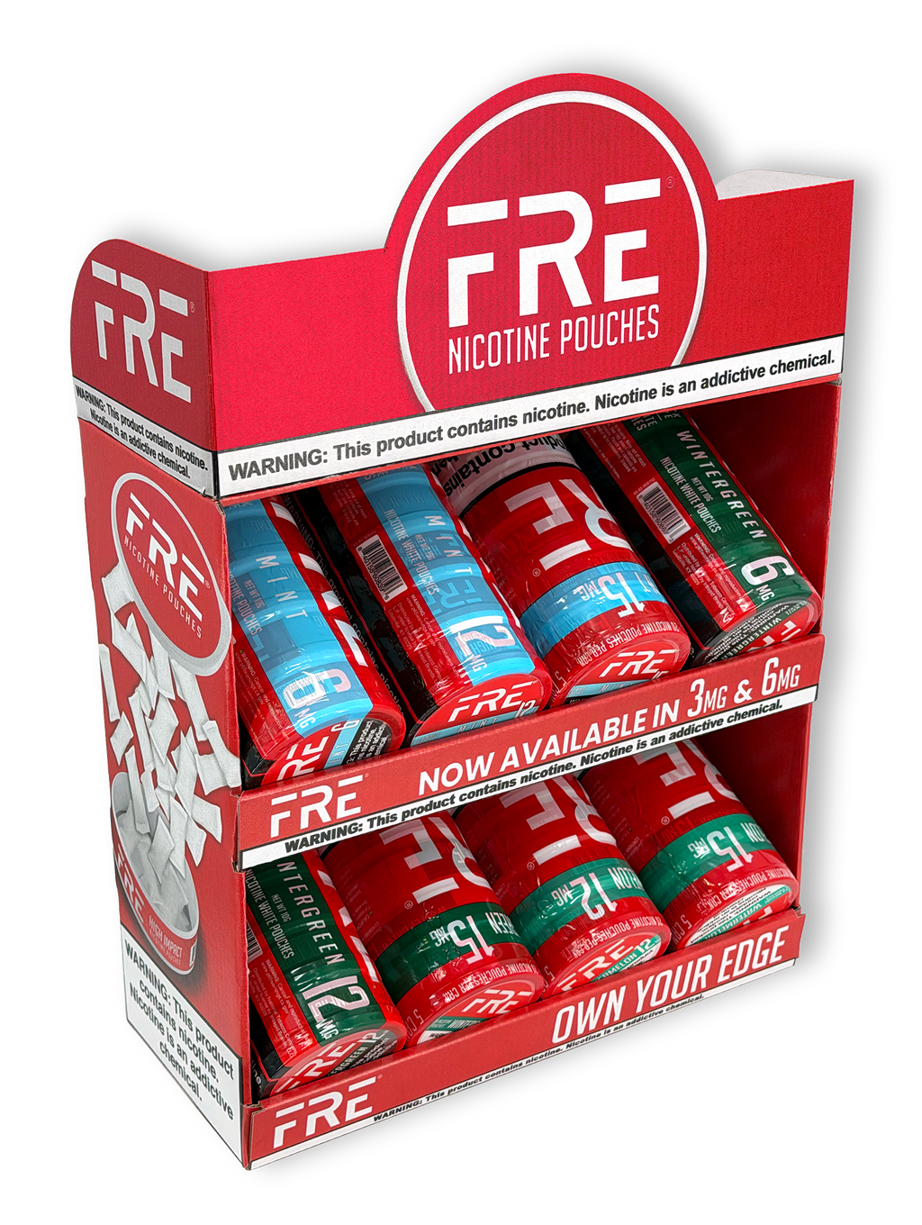 FRE's Power Set ships as a single item with one barcode — unbox it, set it on the counter, and you've got 8 of FRE's fastest-moving SKUs ready to sell: Mint and Wintergreen in 6mg, 12mg, and 15mg, plus Watermelon in 12mg and 15mg. No planogram changes, no fixture requests, no complicated item setup. One PO, one receiving scan, and you're live in under 10 minutes. Reorder is just as simple — one item number, one case, restocked.